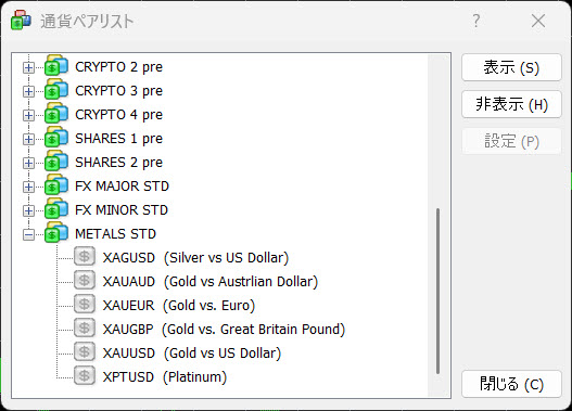 METALS STDの中にゴールドやシルバーなどがあるので、選択しましょう。