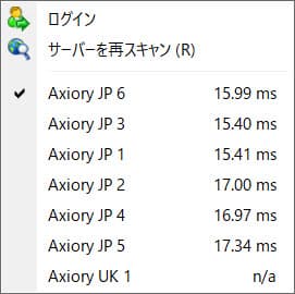 Axioryは日本にサーバーを6台置いているため、日本国内でのスピードも速く、サーバーがたくさんあるため約定力が高いです。