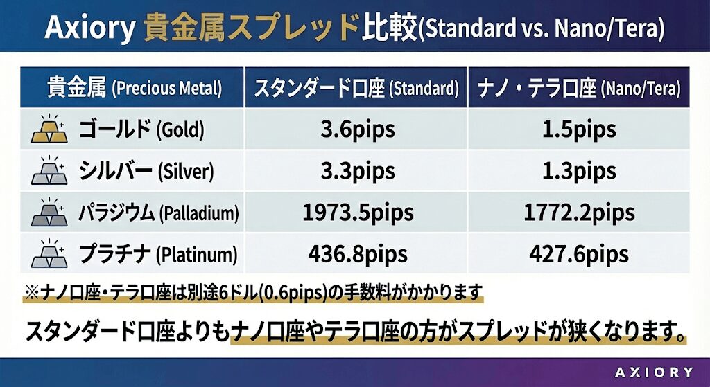 ※ナノ口座・テラ口座は別途6ドル(0.6pips)の手数料がかかります