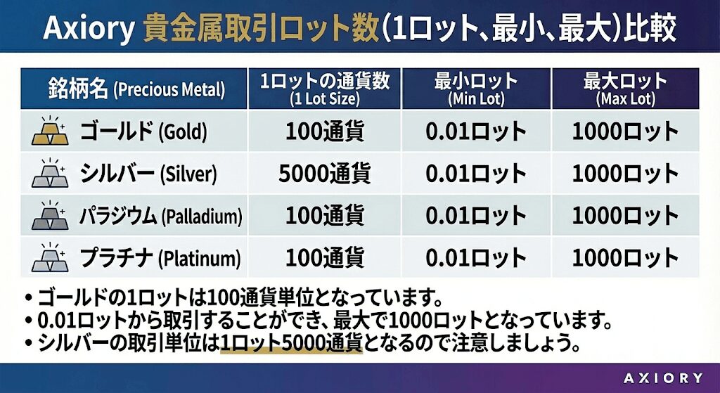 | パラジウム | 100通貨 | 0.01ロット | 1000ロット |