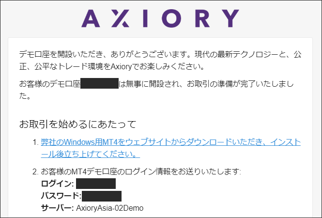 Axioryのデモ口座はいくつでも作れるので、閉鎖されたか分からなくなったらどんどん開設しましょう。