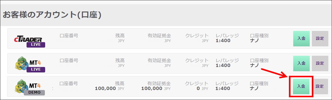 デモ口座の入金方法 (※リアル口座のある人限定)