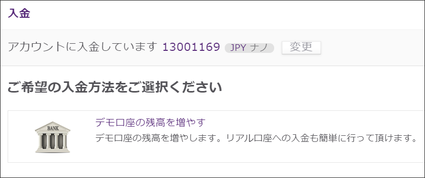 デモ口座に入金(残高の変更)をする場合はリアル口座を持っている人限定になります。