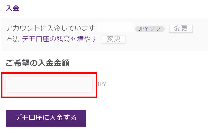 ご希望の入金金額を入力して「デモ口座に入金する」をクリックします。