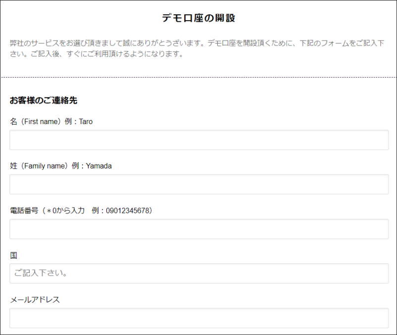 デモ口座の必要事項は基本的に英語で入力して行きます。