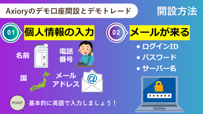 このページではAxioryのデモ口座の開設方法をメインに画像付きで紹介して行きます。