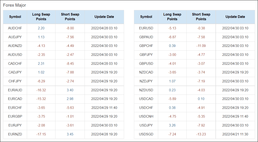 スワップポイントは日々の為替で変わりますが、スワップのポイント自体もよく変更されるため、定期的にチェックしておきましょう。