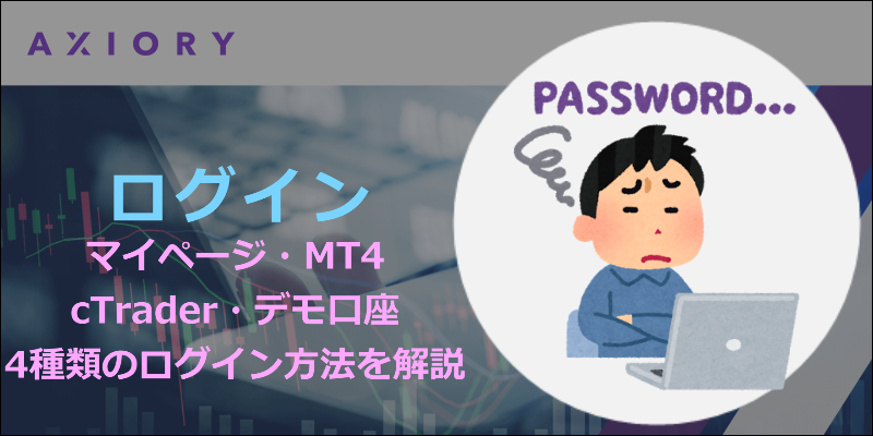 Axiory Axioryへのログイン マイページ(MyAxiory)とMT4のログイン方法 Axioryのログイン方法について解説して行きます。Axioryのマイページ(MyAxiory)、MT4、cTrader、デモ口座のログインを画像付きで紹介します。また、ログインできない場合の対処方法についても分かりやすくレクチャーします。 2025.10.10 Axiory