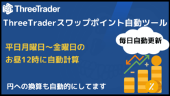 ThreeTrader ThreeTraderのスワップポイント一覧・ランキング(自動計算ツール) ThreeTraderのスワップポイントの自動計算ツールです。月曜日~金曜日のお昼の12時に毎日自動更新となります。ランキングとスワップポイント一覧は、自動的に円に換算されて表示するようにしています。↓以下のページでは各業者のスワップポイン... 2025.10.10 ThreeTraderスワップポイント