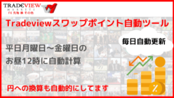 Tradeview Tradeviewのスワップポイント一覧・ランキング(自動計算ツール) Tradeviewのスワップポイントの自動計算ツールです。月曜日~金曜日のお昼の12時に毎日自動更新となります。ランキングとスワップポイント一覧は、自動的に円に換算されて表示するようにしています。↓以下のページでは各業者のスワップポイント比... 2025.10.10 Tradeviewスワップポイント