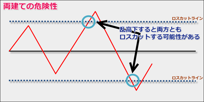 乱高下で両方ともロスカットする可能性がある(証拠金を失う)