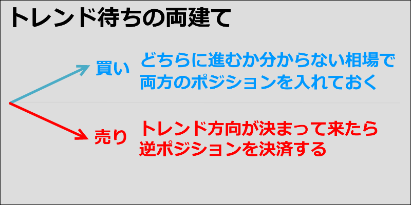 初めから「買い・売り」両方のポジションを取り、どちらかのトレンドが来るのを待ちます。