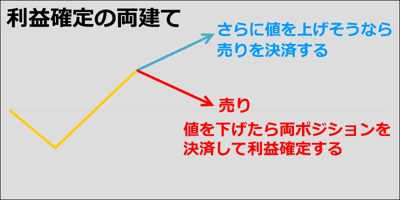 通常だと、両建ては取引中のリスクを回避するために使います。