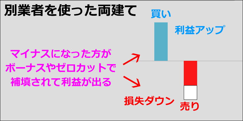 同一口座ではゼロカットが効かないので、別口座を利用したり、別業者の口座を利用した両建てが存在します。