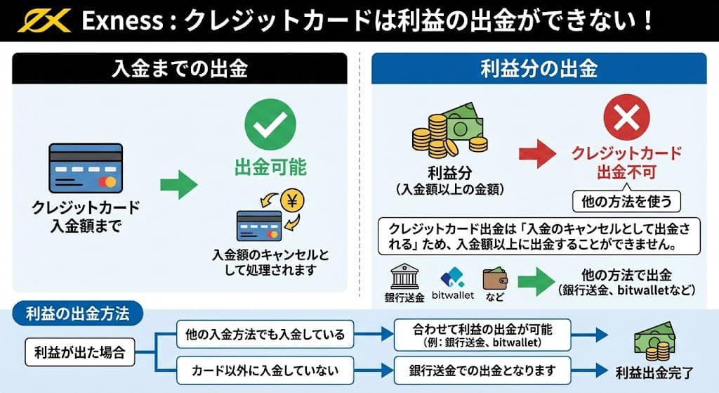 Exnessで利益が出た場合、利益の出金は他の方法となります。