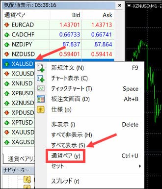 Forexの箇所からXAUUSDを選択します。
