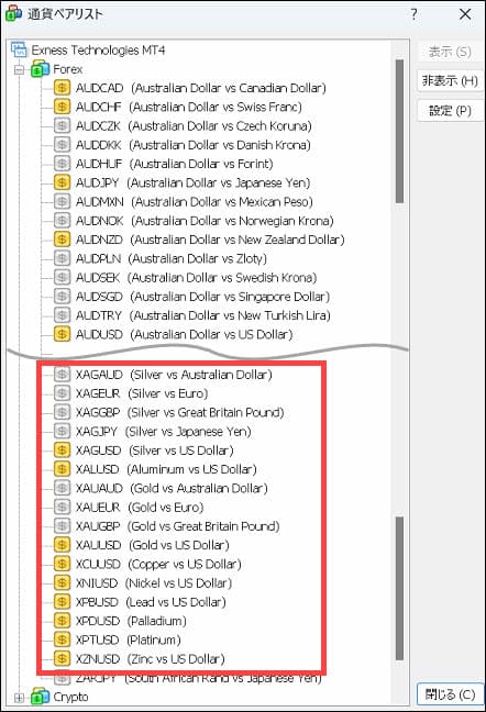 ForexからXAUUSDを選択