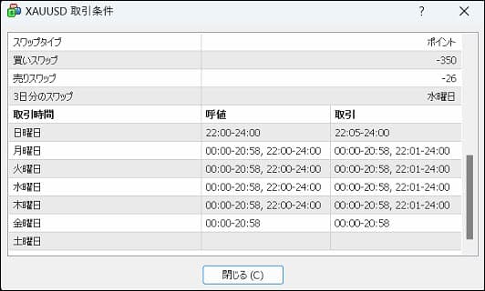 ゴールドのスワップポイント