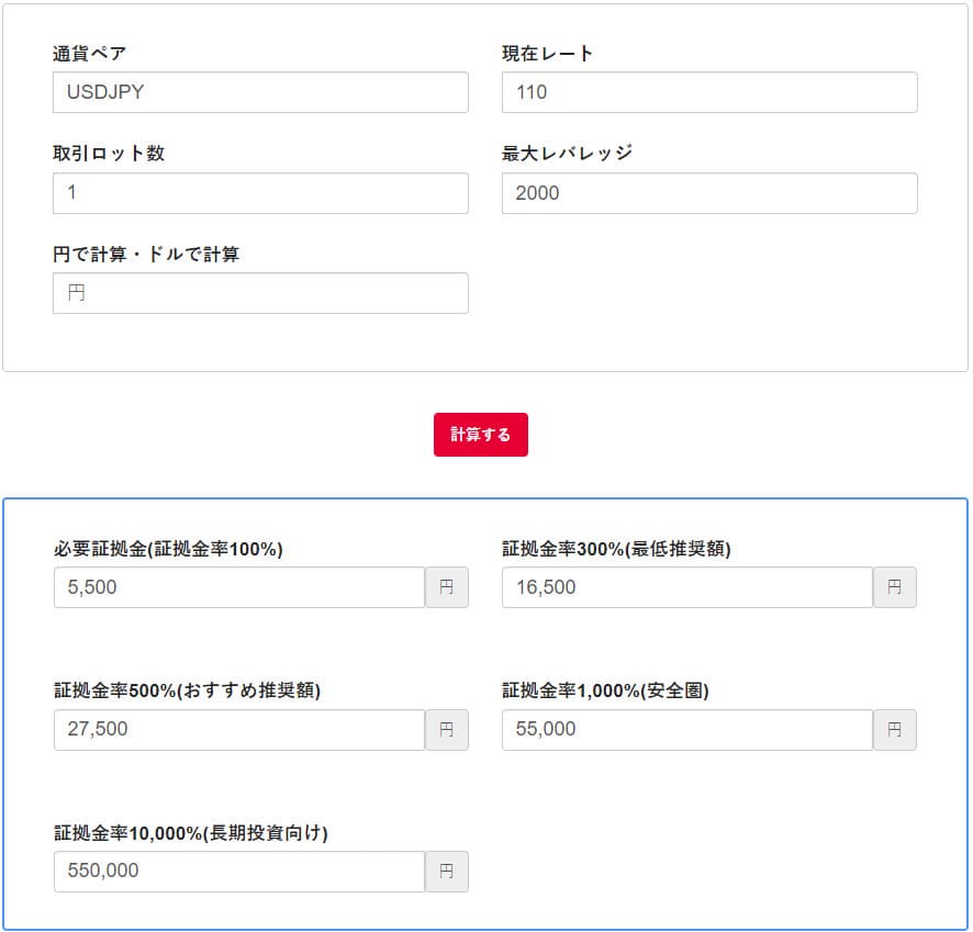 手計算でも良いですが、当サイトでレバレッジや証拠金を計算するツールを開発したので、ぜひ使ってみてください。