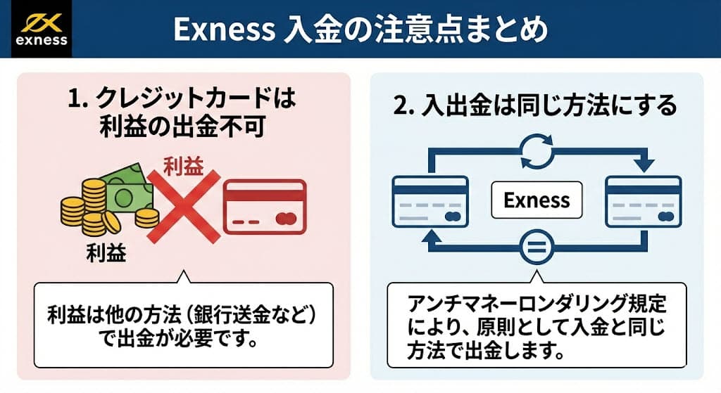Exness入金の注意点