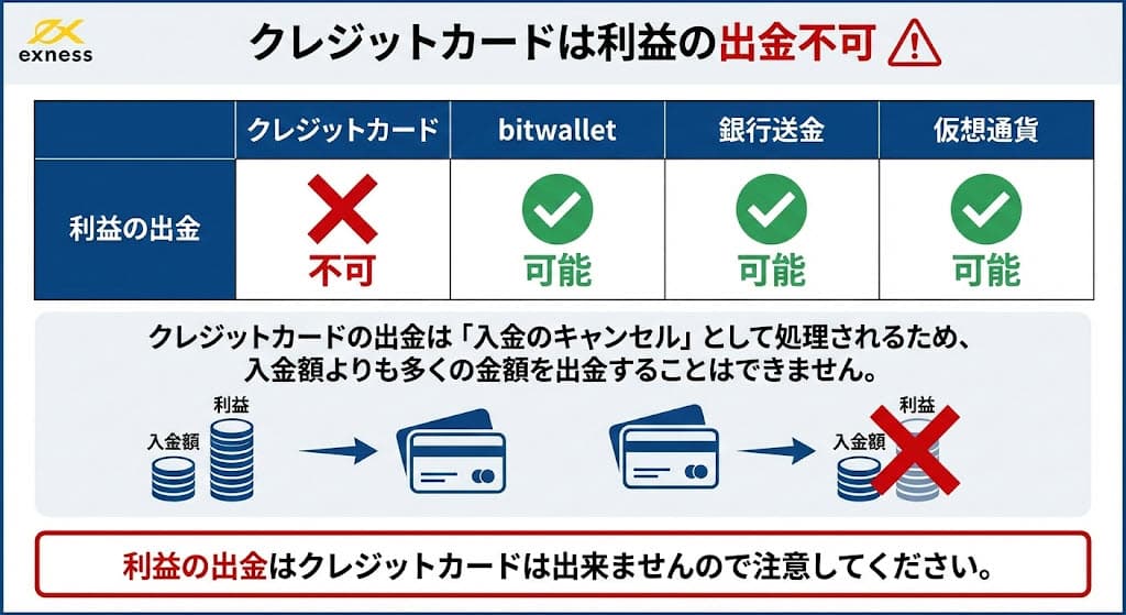 クレジットカードは利益の出金不可