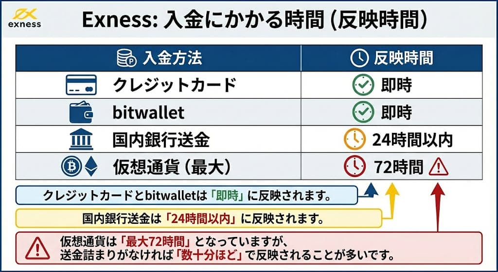Exnessの入金方法と手数料、入金にかかる時間について解説していきます。