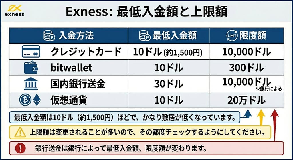 Exnessは最低入金額も低く、入金しやすいのが特徴です。