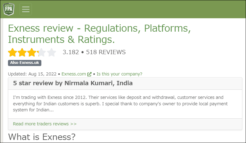 海外のFX業者の評価サイトFPAを見ると、3.182点で平均的な数値となりました。