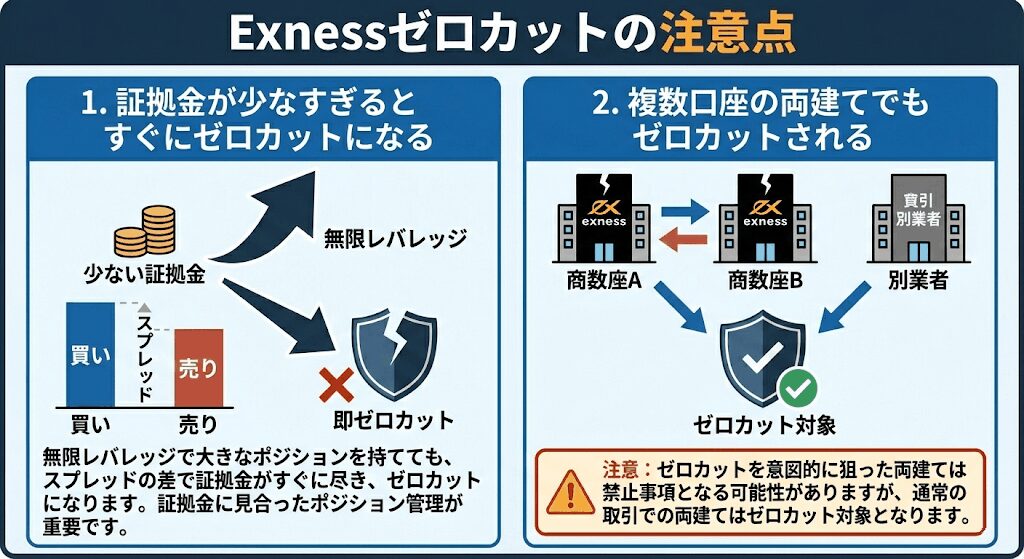 Exnessのゼロカットについて、注意点を紹介していきます。