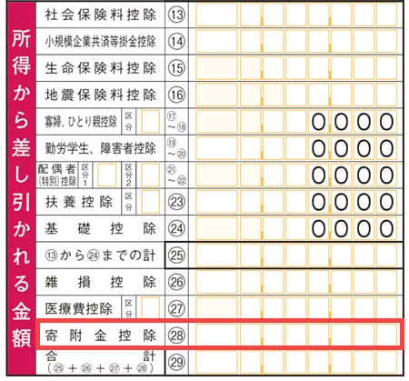 確定申告をする人は寄付金控除の箇所にふるさと納税の控除額を記入します。