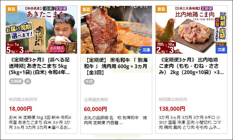お米やお肉、野菜などを3回~12回の定期便でもらうことができるので、ぜひ利用すると良いでしょう。