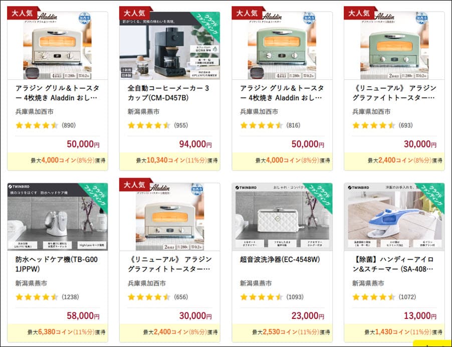 ふるさと納税サイトによっては家電を選ぶこともでき、トースターやコーヒーメーカーなどの電化製品を選ぶことができます。