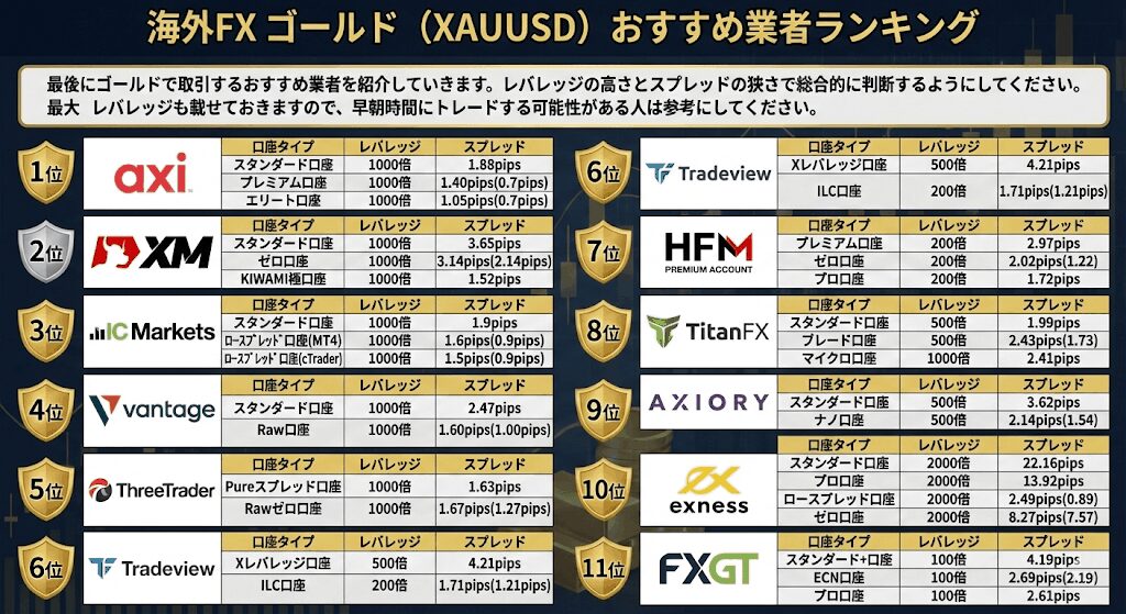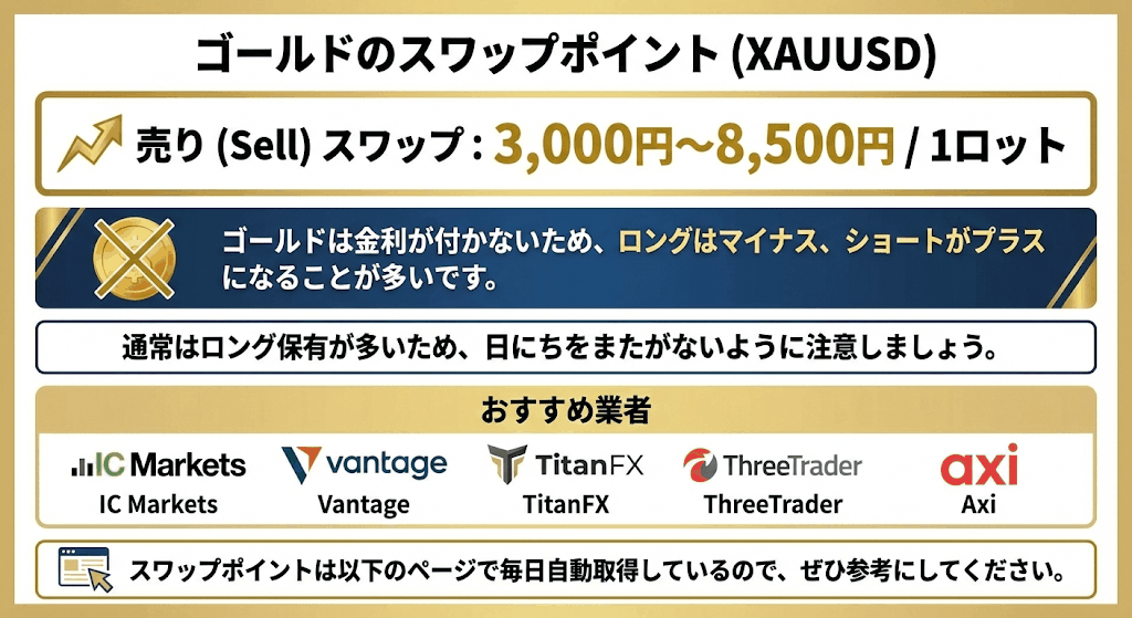 ・海外FXのゴールド(XAUUSD)のスワップポイントランキング【毎日更新】