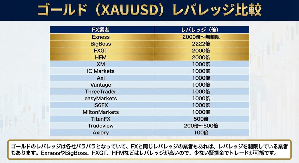 少ない資金でゴールドのトレードをしたい人は、レバレッジが制限されていない業者を使うようにしましょう。