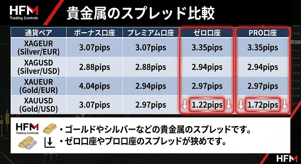 ゴールドやシルバーなどの貴金属のスプレッドです。