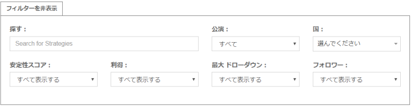 HFMのコピートレードはフィルターで条件を絞ることができます。