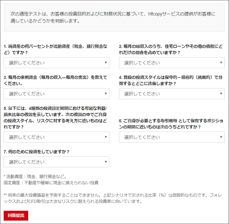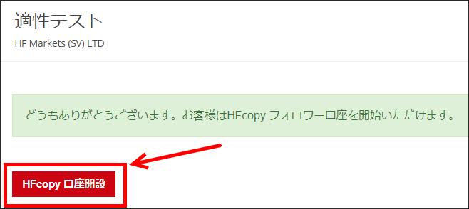 無事テストに合格すると「HFcopy 口座開設」を選択することができます。