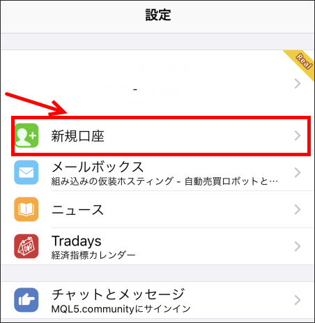 「新規口座」を選択します。
