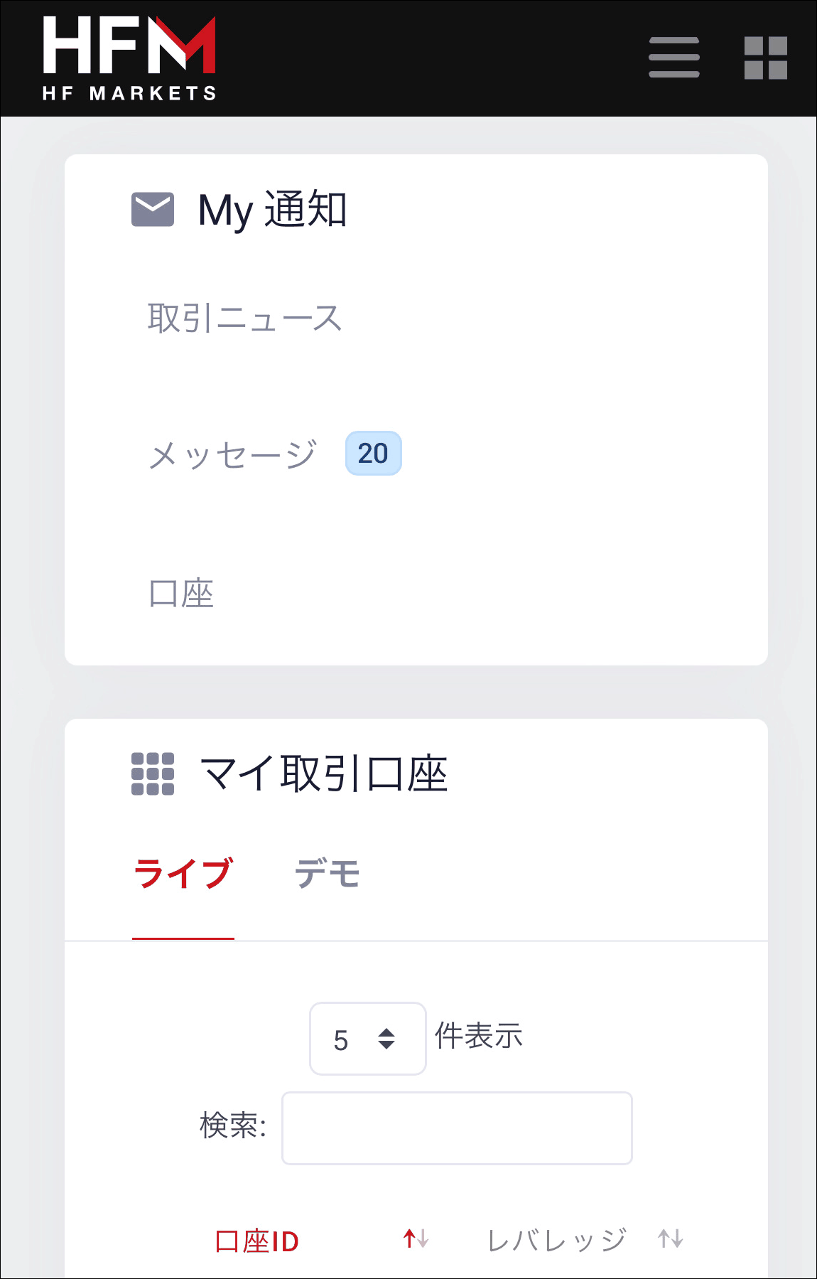 HFMのスマホでのログイン(マイページ)