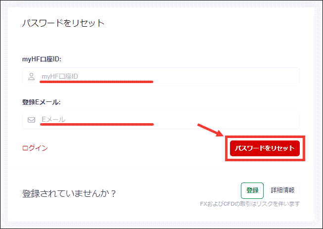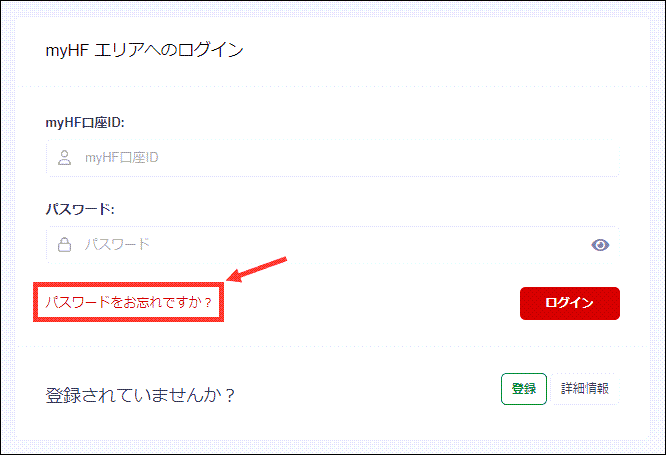 HFMのログインページの「パスワードをお忘れですか?」をクリックします。