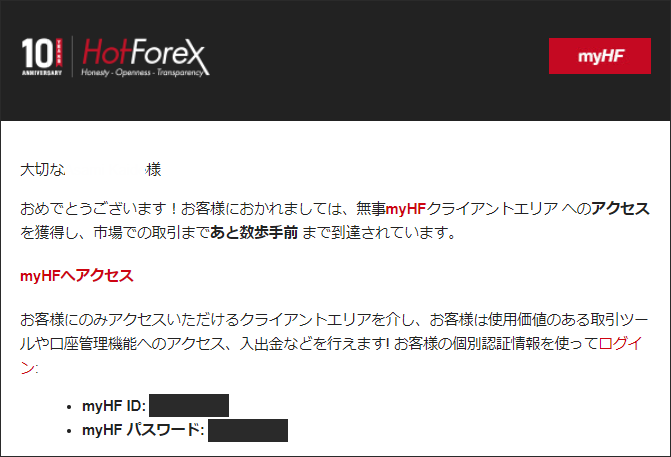 ログインIDとパスワードはHFMに口座開設した時に「HFMへようこそ!」というメールに書かれています。