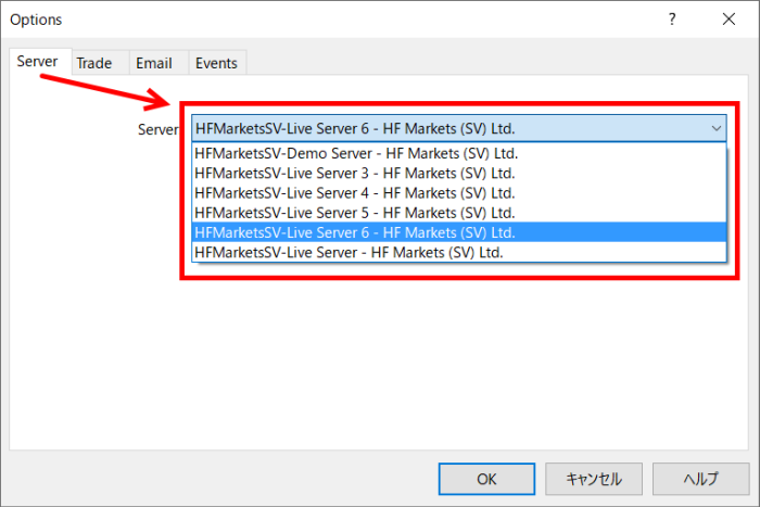 HFMはたくさんの種類があるので「HFMarkets SV」が日本のサーバーとなります。