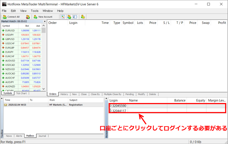 複数ログインしたい場合は、それぞれの口座をクリックしてログインするようにしましょう。