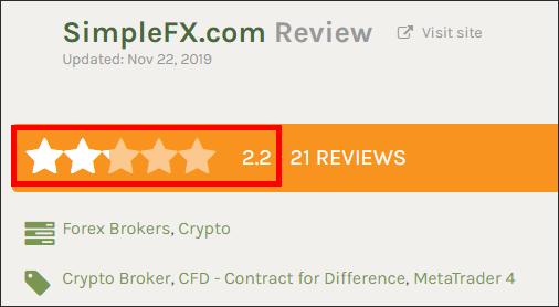 点数が2点以上あるのは、悪い評判に対してもSimpleFXが回答をして「調べますのでアカウントを教えてください」と言って回っているためです。