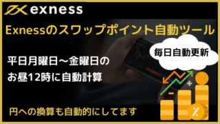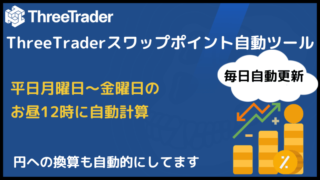 スワップポイントは平日の昼12時前後にMT5から自動取得し、為替計算で円表示しています。