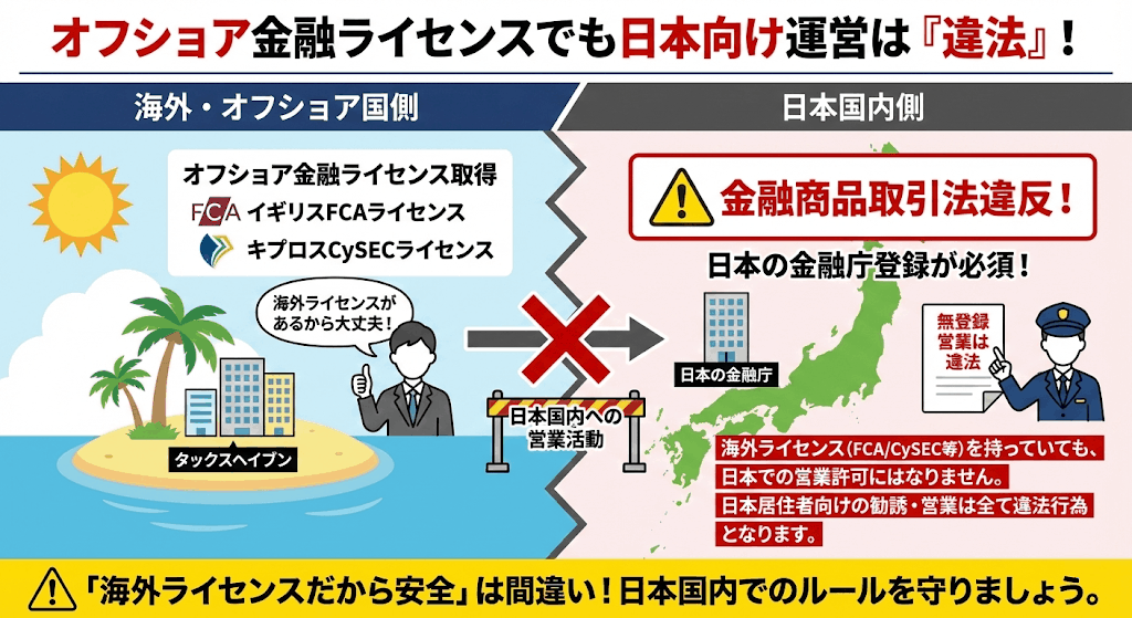 オフショア国で金融ライセンスと取っていても日本向け運営は違法