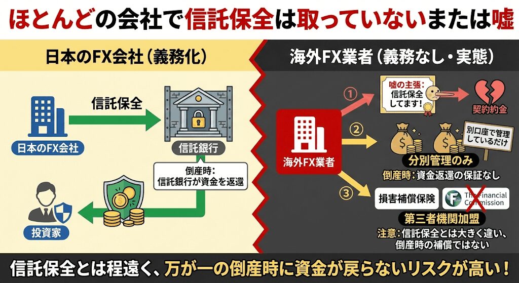 ほとんどの会社で信託保全は取っていないまたは嘘