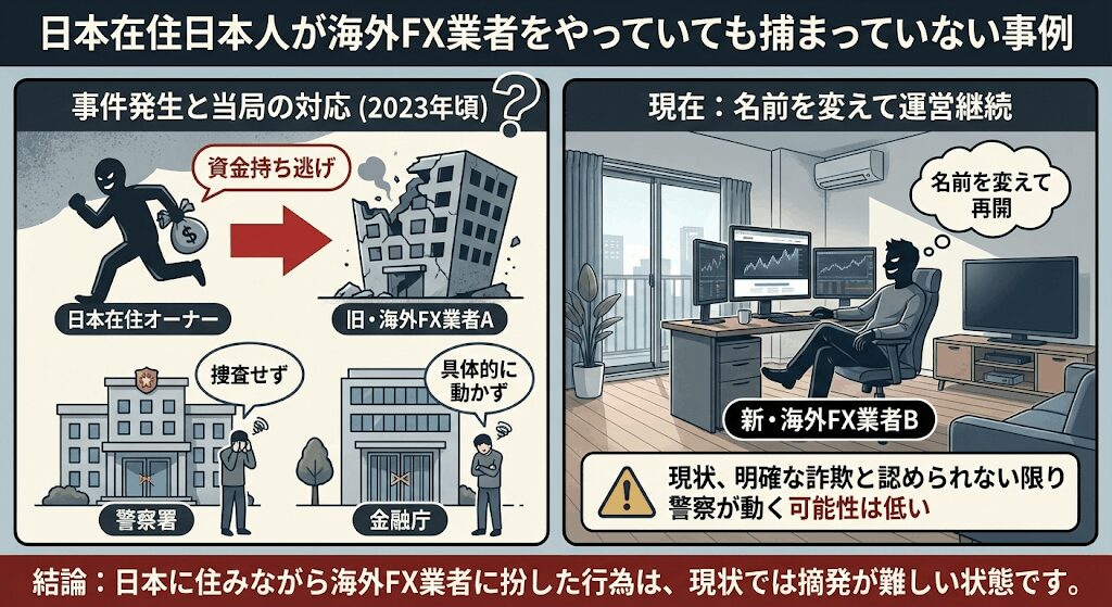 日本在住日本人が海外FX業者をやっていても捕まっていない事例