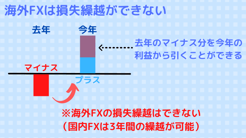 海外FXは国内FXのように3年間の繰越控除が行なうことができません。