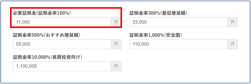 110円 × 10万通貨 ÷ 1000倍 = 11,000円
